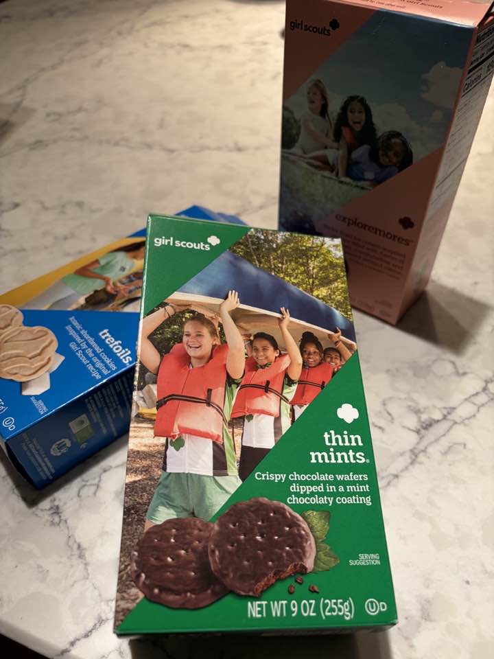 MARCH 13, 2026 – This evening we enjoyed dinner out with our good friends Jim and Bonnie. Manitou, the popular spot in downtown White Bear Lake, was royally hopping in anticipation of St. Patrick’s Day, just four days away. Just as we were finishing our meal, a Girl Scout in full regalia started making the rounds among the crowd of patrons to sell perennial Girl Scout cookies. The girl’s dad kept tabs on the inventory stacked high behind a nearby pillar. When the Girl Scout solicited our table, Beth politely explained that she, Beth, had already made our household purchase from a neighbor, but having been a Girl Scout herself, Beth opened up a conversation with the girl and asked about all the badges sewn onto the Cadette’s sash.