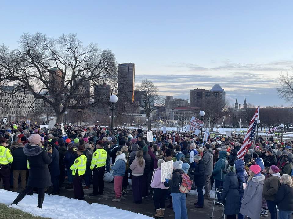 JANUARY 30, 2026 – After my daily ski outing at noon, I returned home to “de-ice” over lunch and the latest news about ICE. When I saw live coverage of the mass demonstration underway in downtown Minneapolis, six miles from our driveway, I left word with Beth, who was out, and headed down to join …